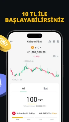 Akár újonc a kriptovaluták terén, akár tapasztalt kereskedő, a Binance TR mobilalkalmazása egyedülálló felhasználói élményt nyújt. Két különböző felület, a Kezdő Menü és a Haladó Menü, teszi lehetővé, hogy mindenki megtalálja a neki megfelelő funkciókat. Elemezze a legfrissebb árfolyamokat és diagramokat, használjon népszerű indikátorokat a piaci trendek mélyreható vizsgálatához. Az Egyszerű Kereskedés, Konvertálás, Automatikus Befektetés és Staking termékek révén gyorsan és hatékonyan alakíthatja ki befektetési stratégiáját, akár passzív jövedelemre is szert téve pénztárcájában lévő kriptoeszközeivel. Élvezze az alacsony, sőt akár nulla százalékos jutalék előnyeit, miközben török líra, USDT, FDUSD vagy TUSD párokkal kereskedik.